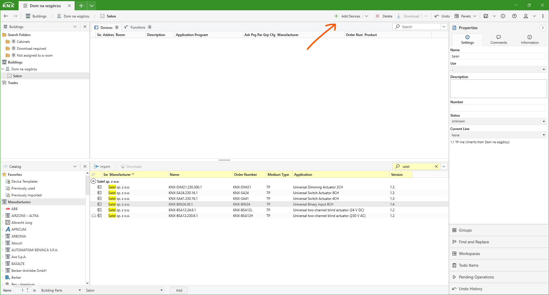 Krok 4: Dodaj urządzenie KNX-SA41 do utworzonego wcześniej pokoju „Salon”