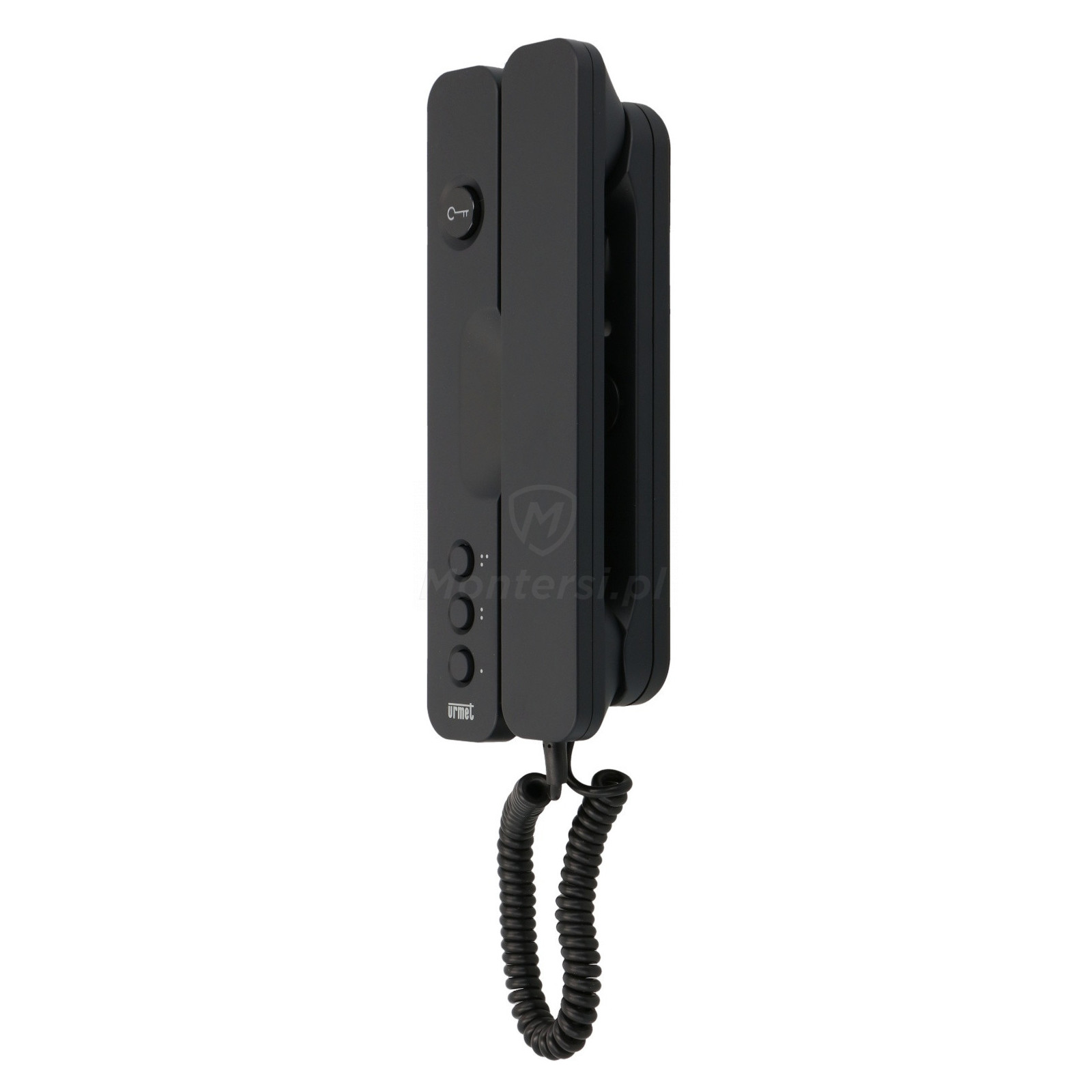 Unifon produkowany jest z tworzywa ABS w kolorze czarnym. Posiada wbudowany dekoder adresujący oraz przetworniki o parametrach zgodnych ze standardami systemów dwużyłowych. Wyposażony jest w przycisk otwierania drzwi, przycisk niezależny oraz dwa przyciski funkcyjne, które mogą służyć np do otwierania dodatkowych drzwi lub bramy wjazdowej.