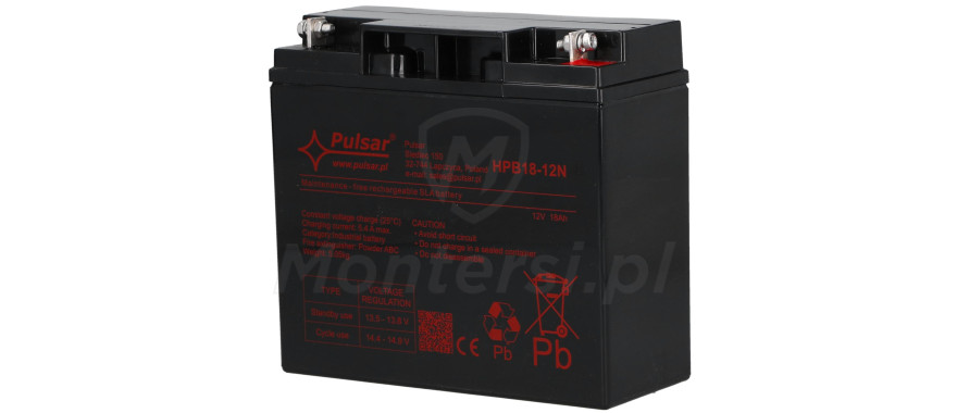 HPB18-12N - Bezobsługowy akumulator kwasowo - ołowiowy, 18 Ah / 12 V wykonany w technologii VRLA (z ang. Valve Regulated Lead Acid) z samoregulującymi jednostronnymi zaworami bezpieczeństwa oraz wewnętrzną rekombinacją gazów.