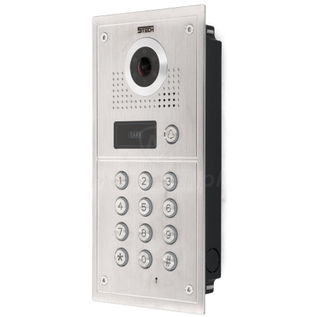 Panel bramowy 5TECH 84222 jest również wyposażony w czytnik zbliżeniowy standardu UNIQUE 125 kHz i podświetlaną klawiaturę numeryczną. Z ich poziomu użytkownik może łatwo i szybko sterować elektrozaczepem - wystarczy że zbliży zapisany w pamięci transponder zbliżeniowy lub wpisze odpowiedni kod. Ta drobna funkcjonalność znacznie ułatwia codzienną obsługę systemu wideodomofonu. W pamięci wideodomofonu można zapisać do 200 indywidualnych kodów otwarcia i 200 transponderów zbliżeniowych.