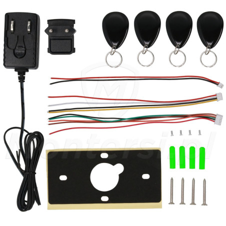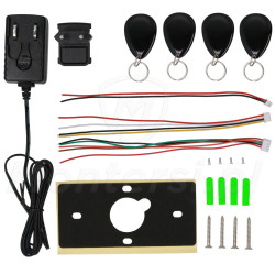 - Wbudowany czytnik RFID standardu Mifare 13.56 MHz ( możliwość zaprogramowania do 200 breloków)