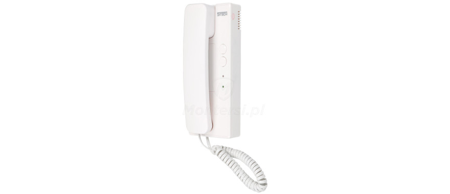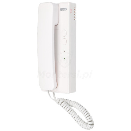 Unifon 5TECH umożliwiający rozszerzenie systemu na kolejne pomieszczenie. Stosowany tam, gdzie nie jest wymagany podgląd wideo. Urządzenie zostało wyposażone w dwa przyciski, jeden do otwarcia furtki a drugi do przekazania rozmowy z powrotem na monitor.