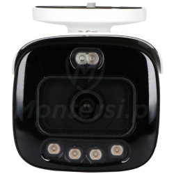 Aktywne odstraszanieWyraźna sygnalizacja wtargnięcia lub innego naruszeniaKamera została wyposażona w wbudowane niebieskie i czerwone diody LED oraz podwójny mikrofon i głośnik, umożliwiające aktywne odstraszanie intruzów. Po odpowiedniej konfiguracji urządzenie może generować świetlne i dźwiękowe alarmy w reakcji na zdarzenia, takie jak wtargnięcie do wyznaczonej strefy, przekroczenie linii czy detekcja ruchu. Alarm może być również wyzwalany ręcznie lub z poziomu systemu monitoringu, co pozwala na elastyczne dostosowanie do scenariusza zabezpieczeń |