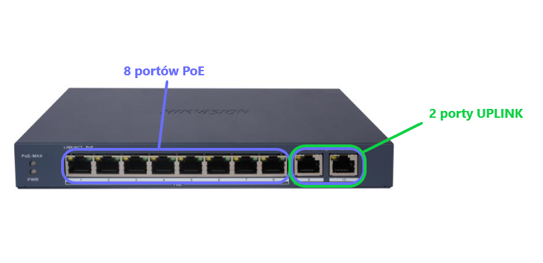 - Porty PoE: 6x RJ-45 FE (802.3af/at), 2x RJ-45 FE (802.3af/at/bt)