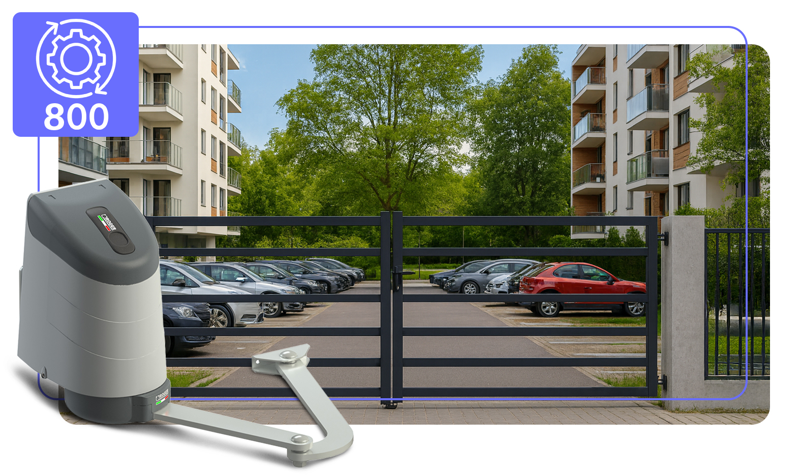 Intensywność pracy siłownikaNiezawodność przy dużym natężeniu ruchuSiłowniki zostały zaprojektowane z myślą o pracy bardzo intensywnej - do 800 cykli dziennie. Dzięki zastosowaniu silników bezszczotkowych BRUSHLESS oraz cyfrowego systemu sterowania, napędy utrzymują stabilność działania i wysoką precyzję pracy nawet przy częstym użytkowaniu. Konstrukcja oparta wyłącznie na metalowych elementach przekładni minimalizuje ryzyko przedwczesnego zużycia. Tak wysoka intensywność sprawia, że zestaw doskonale sprawdza się w miejscach o dużym natężeniu ruchu, takich jak osiedla mieszkaniowe, wjazdy firmowe, parkingi czy obiekty komercyjne wymagające niezawodnej automatyki bramowej. |