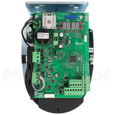 Centrala B70/2ML/BOXZaawansowane sterowanie siłownikami BRUSHLESSZestaw został wyposażony w centralę sterującą B70/2ML/BOX, zaprojektowaną do obsługi silników bezszczotkowych 24 V DC. Urządzenie odpowiada za pełne zarządzanie ruchem bramy, kontrolę zabezpieczeń oraz współpracę z akcesoriami dodatkowymi. Centrala posiada zestaw wejść umożliwiających podłączenie m.in. fotokomórek, listew bezpieczeństwa, przycisków sterujących oraz systemów zdalnego sterowania. Wyposażona jest również w wyjścia do sterowania siłownikami, lampą ostrzegawczą, oświetleniem dodatkowym oraz sygnalizacją stanu bramy. Dzięki temu instalacja może być łatwo dopasowana do indywidualnych potrzeb użytkownika.