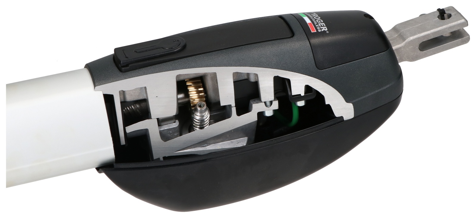 Silnik bezszczotkowy BRUSHLESSNowoczesna technologia napędu dla intensywnej pracySiłowniki zostały wyposażone w silnik bezszczotkowy typu BRUSHLESS, który gwarantuje wysoką wydajność i niezawodność działania. Dzięki eliminacji szczotek mechanicznych, konstrukcja zapewnia dłuższą żywotność, ograniczone zużycie podzespołów oraz cichą i stabilną pracę. Elektroniczna komutacja umożliwia płynne dostosowanie momentu obrotowego do warunków pracy, co pozwala na obsługę skrzydeł bramy o długości do 4 m. Zintegrowany enkoder cyfrowy SENSORLESS zapewnia precyzyjne pozycjonowanie i bezpieczną kontrolę ruchu.