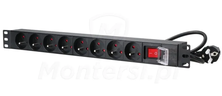 PIX-R19-PDU8-B - Listwa zasilająca 230 V AC przeznaczona do szafy RACK 19", wyposażona w 8 gniazd typu E.