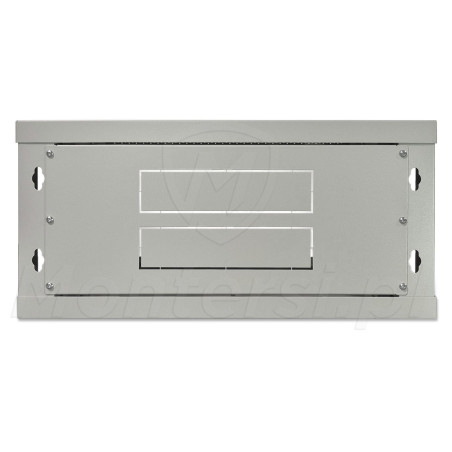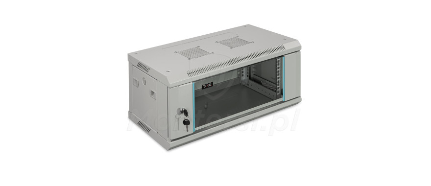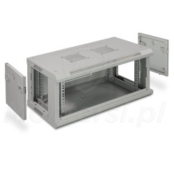 Wisząca szafa PIXIR do standardu RACK 19" przeznaczona do uporządkowania okablowania i rozmieszczenia sprzętów elektronicznych w serwerowni oraz systemów telewizji przemysłowej CCTV. Umożliwia przechowywanie wszystkich istotnym elementów w jednym miejscu, a także łatwy i szybki dostęp do poszczególnych urządzeń zamontowanych wewnątrz szafy. Wyposażona w drzwi frontowe wykonane ze szkła, daję możliwość zajrzenia do środka i sprawdzenia stanu urządzeń bez konieczności otwierania drzwiczek. Na bokach znajdują się drzwiczki wyposażone w systemy zatrzaskowe. Które dają możliwość szerszego dostępu do wnętrza szafy po ich demontażu. System wpuszczenia przewodów, został dobrze przemyślany. Poprzez umieszczone na korpusie szafy panele zaślepiające, po wyłamaniu ich, możemy wpuścić przewody do wnętrza, zachowując przy tym estetykę instalacji.