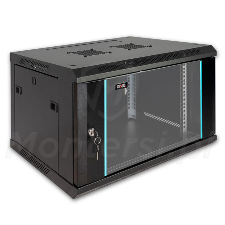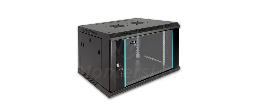 Wisząca szafa PIXIR do standardu RACK 19" przeznaczona do uporządkowania okablowania i rozmieszczenia sprzętów elektronicznych w serwerowni oraz systemów telewizji przemysłowej CCTV. Umożliwia przechowywanie wszystkich istotnym elementów w jednym miejscu, a także łatwy i szybki dostęp do poszczególnych urządzeń zamontowanych wewnątrz szafy. Wyposażona w drzwi frontowe wykonane ze szkła, daję możliwość zajrzenia do środka i sprawdzenia stanu urządzeń bez konieczności otwierania drzwiczek. Na bokach znajdują się drzwiczki wyposażone w systemy zatrzaskowe. Które dają możliwość szerszego dostępu do wnętrza szafy po ich demontażu. System wpuszczenia przewodów, został dobrze przemyślany. Poprzez umieszczone na korpusie szafy panele zaślepiające, po wyłamaniu ich, możemy wpuścić przewody do wnętrza, zachowując przy tym estetykę instalacji.