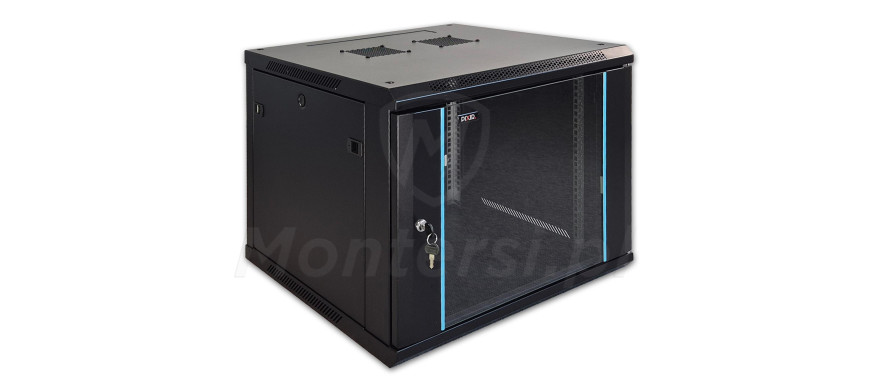 Wisząca szafa PIXIR do standardu RACK 19" przeznaczona do uporządkowania okablowania i rozmieszczenia sprzętów elektronicznych w serwerowni oraz systemów telewizji przemysłowej CCTV. Umożliwia przechowywanie wszystkich istotnym elementów w jednym miejscu, a także łatwy i szybki dostęp do poszczególnych urządzeń zamontowanych wewnątrz szafy. Wyposażona w drzwi frontowe wykonane ze szkła, daję możliwość zajrzenia do środka i sprawdzenia stanu urządzeń bez konieczności otwierania drzwiczek. Na bokach znajdują się drzwiczki wyposażone w systemy zatrzaskowe. Które dają możliwość szerszego dostępu do wnętrza szafy po ich demontażu. System wpuszczenia przewodów, został dobrze przemyślany. Poprzez umieszczone na korpusie szafy panele zaślepiające, po wyłamaniu ich, możemy wpuścić przewody do wnętrza, zachowując przy tym estetykę instalacji.