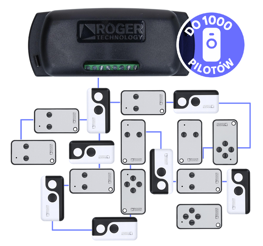 Duża pojemność pamięciObsługa nawet 1000 pilotówOdbiornik umożliwia zapisanie w pamięci do 1000 pilotów w trybie zaawansowanym (zmiennym), co sprawia, że doskonale nadaje się do zastosowań w dużych instalacjach – np. na osiedlach, parkingach lub w obiektach przemysłowych. W trybie podstawowym można zarejestrować do 250 pilotów, a dla kodu stałego do 100 nadajników. Dzięki temu zarządzanie dostępem pozostaje proste i elastyczne, nawet przy dużej liczbie użytkowników. |
