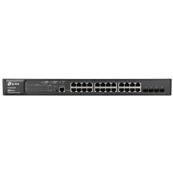 Zarządzalny switch gigabitowy, umożliwiający realizację średniej wielkości sieci LAN i systemów monitoringu IP. Cechuje się niezawodnością, dużą wydajnością i szerokimi możliwościami konfiguracji. Ponadto posiada liczne funkcje zarządzania ruchem, optymalizacji transmisji i zabezpieczeń.