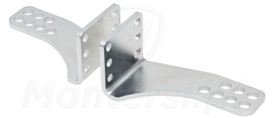 Zestaw wzmocnionych uchwytów montażowych do siłowników bram skrzydłowych. Produkt polskiej produkcji, kompatybilny ze wszystkimi napędami z otworami o średnicy 12 mm, m.in.: NICE, Came i inne.