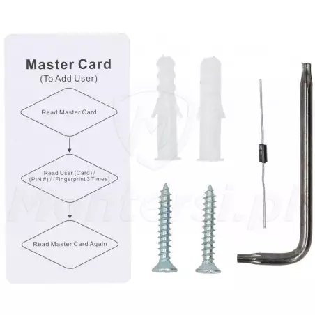 - Moduł pamięci na 1000 użytkowników ( 100 odcisków linii papilarnych, 900 kart/kodów PIN)