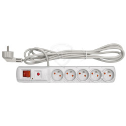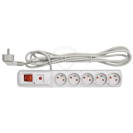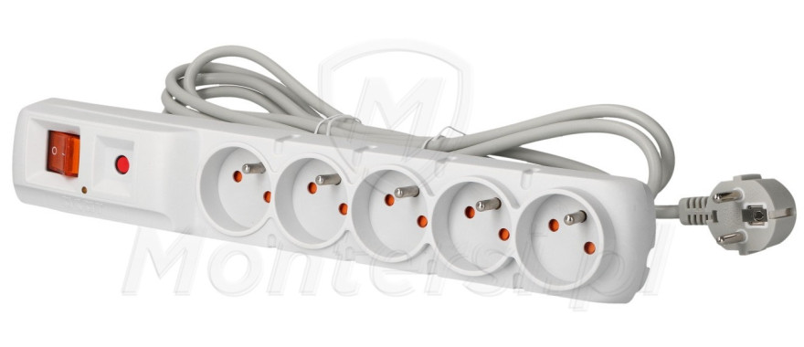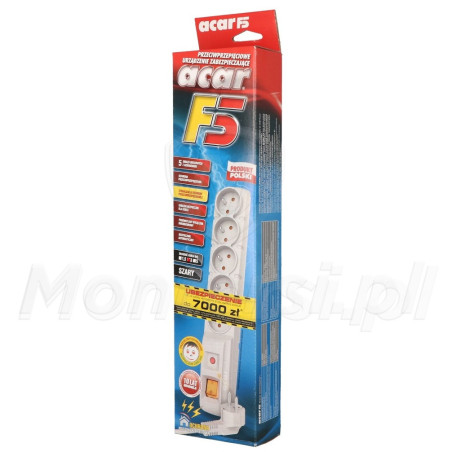 ACAR F5 5M - Standardowa listwa przepięciowa 230V AC (5 gniazd). Przy jej pomocy możliwe jest rozdzielenie zasilania na 5 urządzeń elektrycznych, o łącznym poborze mocy do 2300 W. Dodatkowymi cechami listwy są: