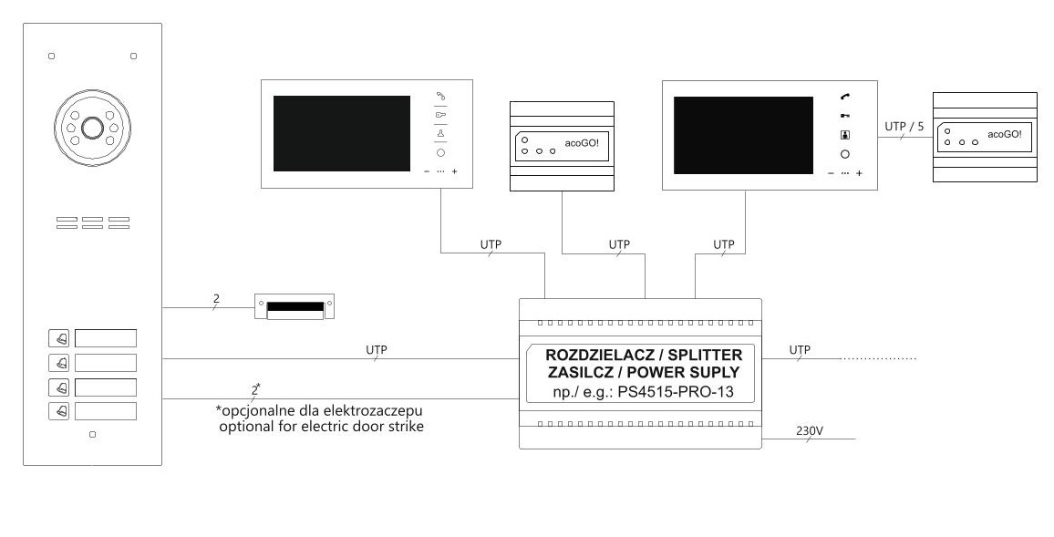 - Możliwość podłączenia w dowolnym miejscu magistrali domofonowej