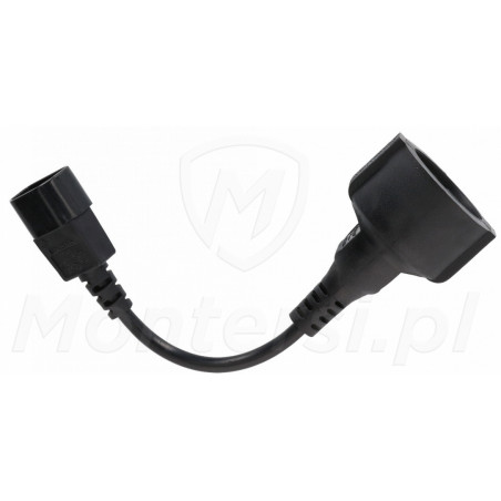 Adapter do przewodu zasilającego zakończony z jednej strony wtyczką IEC C14 a z drugiej Schuko F. Przeznaczony do pracy głównie z komputerami PC, zasilaczami UPS oraz wszelkiego rodzaju innych urządzeń RTV. Wtyczka w celu zapewnienia większej ochrony jest fabrycznie zalewana. Całkowita długość adaptera wynosi 15 cm.