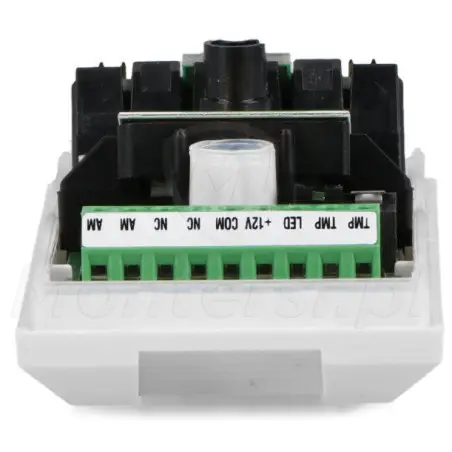 Czujka jest również wyposażona w podwójne zabezpieczenie sabotażowe, chroniące przed nieautoryzowanym otwarciem obudowy i oderwaniem od podłoża. Ochrona sabotażowa jest realizowana przez styk umieszczony na płytce elektroniki (otwarcie obudowy) i styk umieszczony na tylnej ścianie czujki (oderwanie od podłoża)