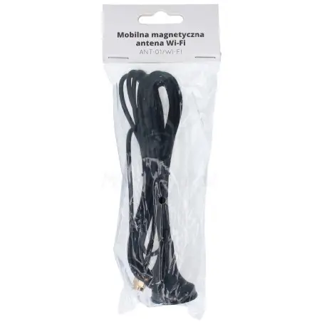 ANT-01/WI-FI - Antena zewnętrzna z przewodem o długości 250 cm służąca do wyprowadzenia sygnału radiowego na zewnątrz rozdzielnicy. Wyposażenie podstawki anteny w magnes zapewni łatwy montaż do powierzchni metalowych. Urządzenie może być stosowane wewnątrz jak i na zewnątrz domu.