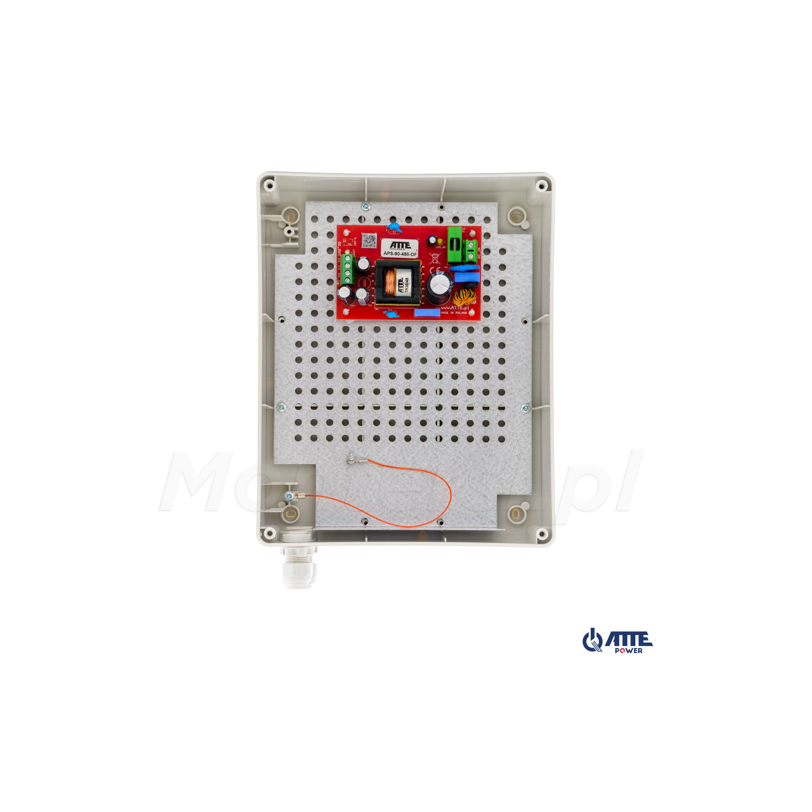APS‑90‑480‑L1 - Moduł zasilacza sieciowego umieszczony w obudowie wewnętrznej ABOX-S1. Zasilacz przeznaczony do zasilania urządzeń wymagających stabilnego napięcia takich jak kamery CCTV czy rejestratory. Charakteryzuje się stabilnym napięciem 48 V DC i może zasilać urządzenia o mocy do 96 W. Do najbardziej charakterystycznych cech zasilacza zaliczyć można: