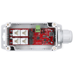 - Urządzenie jest zamontowane w zewnętrznej obudowie ABOX-CA1 która posiada stopień ochrony IP68.