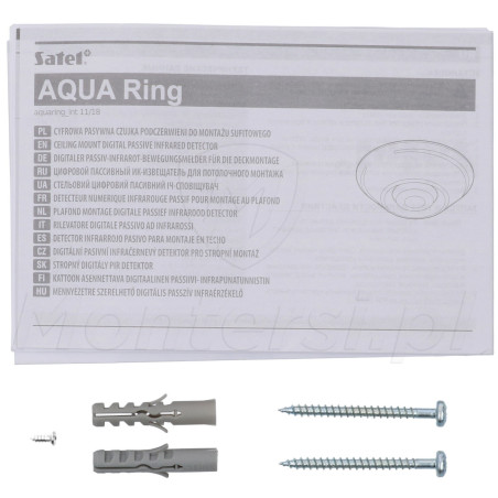 AQUA Ring - Cyfrowa, pasywna czujka ruchu PIR, przeznaczona do instalacji w systemach antywłamaniowych. Wyposażona w cyfrowy algorytm detekcji i funkcje kompensacji temperatury, gwarantuje wiarygodną detekcję i dobrą odporność na wystąpienie fałszywych alarmów. Dodatkowo czujka, przeznaczona do montażu sufitowego, posiada wbudowaną funkcję prealarmu i certyfikat EN-50131 GRADE 2.