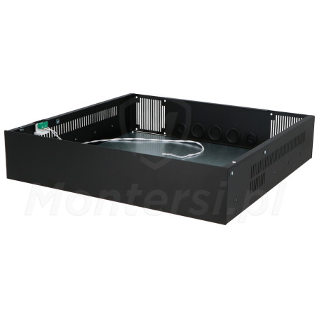 ARAD2N - Uniwersalna obudowa montażowa do szaf standardu RACK 19", umożliwiająca integrację elementów różnych systemów. Przy jej pomocy możliwy jest wygodny montaż urządzeń systemu CCTV, kontroli dostępu, systemu alarmowego, RTV lub LAN w szafie RACKowej. Obudowę można wykorzystać do montażu np. central alarmowych, kontrolerów systemu KD lub zasilaczy. W jej wnętrzu znajduje się również miejsce na standardowy akumulator 7Ah / 12V. Do elementów wyróżniających obudowy ARAD2N można zaliczyć: