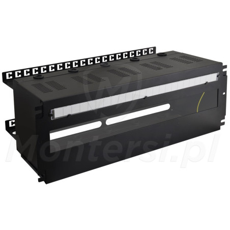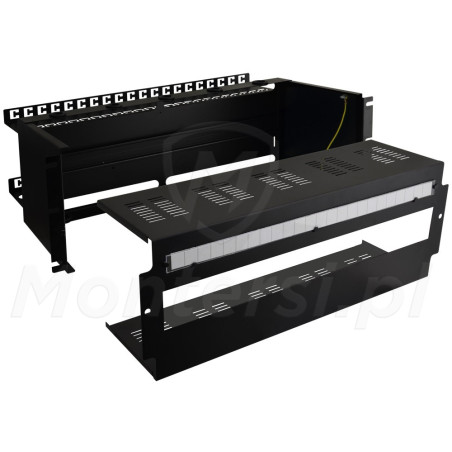 ARADIN3 - Obudowa umożliwiająca montaż urządzeń z uchwytami typu DIN w szafach standardu RACK 19". W jej wnętrzu znajduje się standardowa szyna DIN o długości 24x1S, co oznacza, że można w niej zamontować maksymalnie 24 modułu o szerokości S - przykładowo 24 bezpieczniki z przełącznikami. Wysokość pojedynczego modułu montowanego w obudowie nie może przekraczać 160 mm. Do elementów wyróżniających obudowy można zaliczyć: