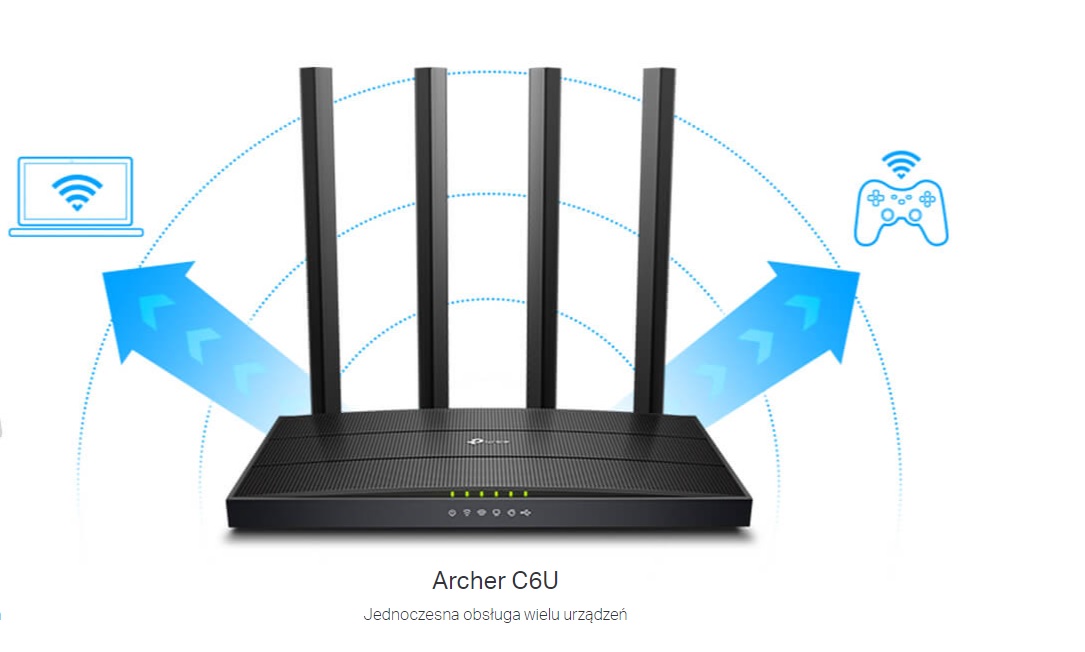 Archer C6U — Dwupasmowy router bezprzewodowy, 802.11ac. Wielofunkcyjny router dwupasmowy pozwalający na nadawanie dwóch oddzielnych sieci działających w standardzie 5 GHz oraz 2.4 GHz. Cztery zewnętrzne anteny zapewniają bardzo duży zasięg działania. Urządzenie może pracować w jednym z dwóch trybów: