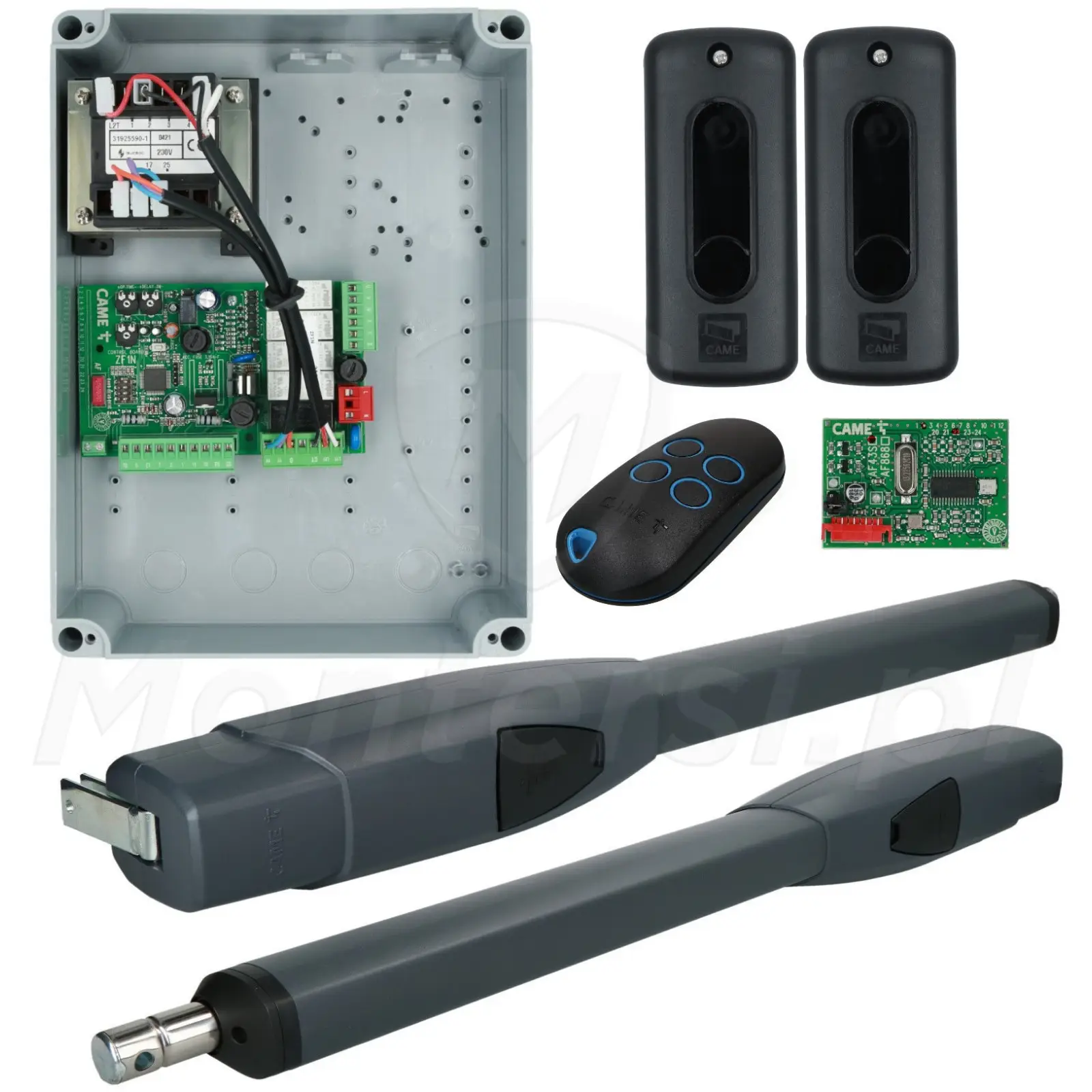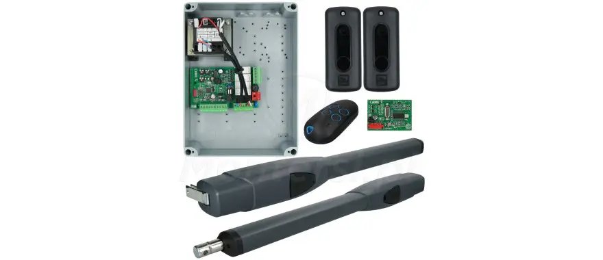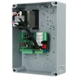 W skład zestawu wchodzi centrala sterująca ZF1N z wbudowanym 2-kanałowym dekoderem radiowym. Zapewnia ona funkcjonalność odpowiednią dla systemów sterowania bramą w domach prywatnych. Możemy do niej podłączyć zestaw fotokomórek, lampę sygnalizacyjną i elektrozamek 12 V.