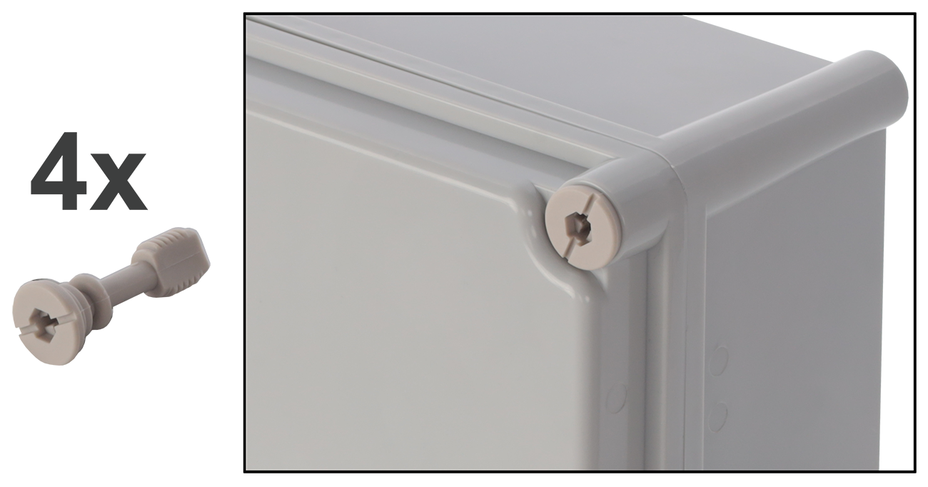 Obudowa posiada wbudowane kanały montażowe, które umożliwiają stabilny i bezpośredni montaż do podłoża, zapewniając trwałość i bezpieczeństwo instalacji. Dzięki klasie szczelności IP66 oraz zastosowaniu odpowiednich dławnic, obudowa jest odporna na wodę, kurz i inne zanieczyszczenia, co gwarantuje jej hermetyczność w wymagających warunkach.