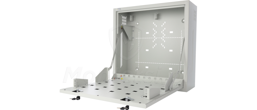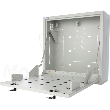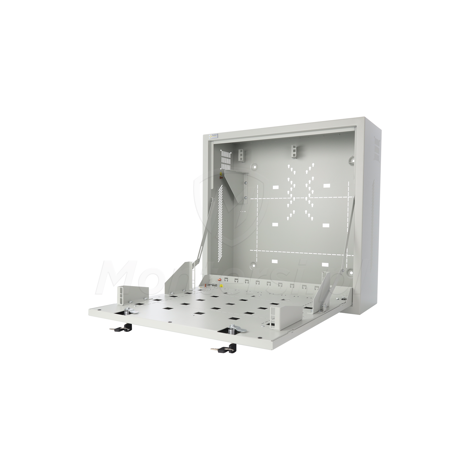 Obudowa AWO534G cechuje się stosunkowo dużymi wymiarami, dzięki którym można zamontować w niej szeroki wachlarz urządzeń systemu CCTV. Obudowa posiada uchylną i demontowalną blachę, do której można przymocować monitor. Zastosowany system mocowania to VESA 50x50 / VESA 75x75 / VESA 100x100. W sytuacji konieczności przeprowadzenia prac serwisowych z rejestratorem, blachę z monitorem można uchylić, co umożliwia łatwy dostęp do rejestratora. Sam rejestrator jest mocowany do tylnej ściany obudowy przy pomocy pasów mocujących.