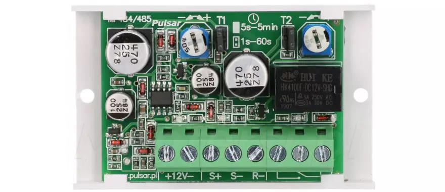 AWZ526 - Moduł przekaźnika czasowego (PC4), umożliwiający wydłużenie czasu sygnału wyzwalającego. Czas przedłużenia impulsu i czas opóźnienia wyzwolenia, można regulować przy pomocy potencjometrów - każdy osobno, w zakresie od 1 s do 5 min.