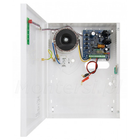 Zasilacz umieszczono w dużej, metalowej obudowie, przystosowanej do montażu natynkowego. Zapewnia ona dodatkową ochronę przed ingerencją osób trzecich i umożliwia montaż zasilacza na ścianie, w dogodnym dla użytkownika miejscu. Do cech charakterystycznych obudowy można zaliczyć: