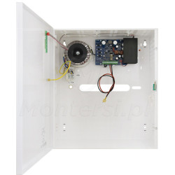 Zasilacz umieszczono w dużej, metalowej obudowie, przystosowanej do montażu natynkowego. Zapewnia ona dodatkową ochronę przed ingerencją osób trzecich i umożliwia montaż zasilacza na ścianie, w dogodnym dla użytkownika miejscu. Do cech charakterystycznych obudowy można zaliczyć: