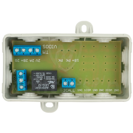 B2 - Uniwersalny moduł sterujący umożliwiający sterowanie automatem bramowym z poziomu monitora, który fabrycznie nie posiada takiej funkcji (wykorzystując wejścia CN1 lub CN2). B2 może być wykorzystany w instalacji realizującej funkcję obsługi tylko jednej furtki. Prezentowany moduł sterować może dowolnym urządzeniem wykorzystującym bezpotencjałowe styki typu NO / NC. Cechami charakterystycznymi przedstawionego modelu są: