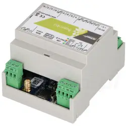 Moduł wyposażony w obudowę przystosowaną do montażu na standardowej szynie DIN (TH35), co umożliwia szybkie, bezpieczne i estetyczne osadzenie urządzenia w rozdzielnicy lub szafie sterowniczej. Idealne rozwiązanie dla instalatorów ceniących wygodę i porządek w instalacji.