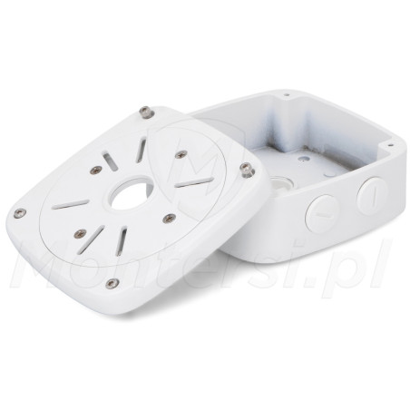 BCS-ATU-B - Uniwersalna puszka montażowa do kamer BCS montowanych na trzy lub cztery śruby. Wykonana z metalu. W kolorze białym. Dzięki tej puszce kamera bedzie zamontowana profesjonalnie na swoim miejscu, a we wnętrzu zmieszczą się wszystkie niezbędne przewody.
