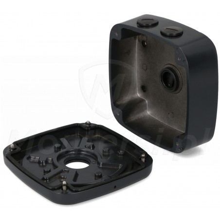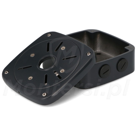 BCS-ATU-G - Uniwersalna puszka montażowa do kamer BCS montowanych na trzy lub cztery śruby. Wykonana z metalu. W kolorze antracytowym. Dzięki tej puszce kamera będzie zamontowana profesjonalnie na swoim miejscu, a we wnętrzu zmieszczą się wszystkie niezbędne przewody.