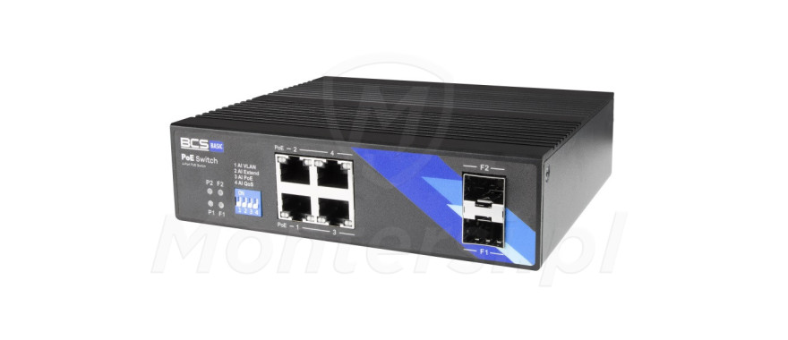 BCS-B-ISP04G-2SFP - 6-portowy switch, 4x PoE af/at, 2x SFP UPLINK