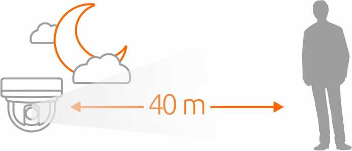 - Wbudowany oświetlacz podczerwieni o zasięgu do 40 m