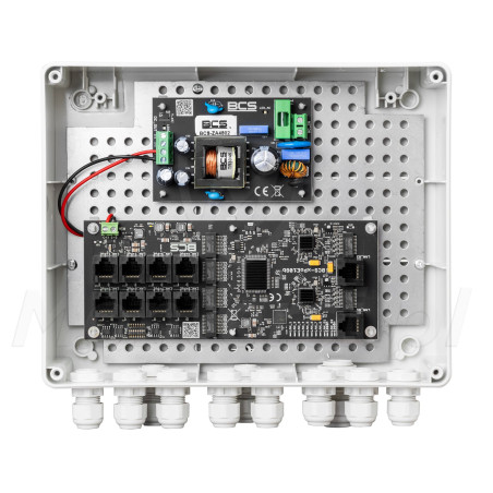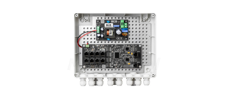 BCS-IP8Gb/Z/E-S - Zestaw switcha PoE i zasilacza w hermetycznej obudowie, dedykowany do pracy w systemie monitoringu IP. Przy jego pomocy możliwa jest realizacja zasilania maksymalnie 8 kamer IP w standardzie PoE 802.3af. Do elementów wyróżniających zestawu można zaliczyć: