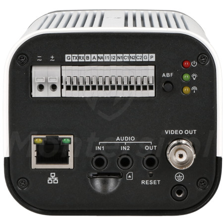- Wejście alarmowe - umożliwia podłączenie takich urządzeń jak czujka ruchu, kontaktron lub fotokomórka. Po naruszeniu wejścia aktywuje się wcześniej zaprogramowana funkcja - przykładowo zwiększa się rozdzielczość obrazu i liczba generowanych klatek