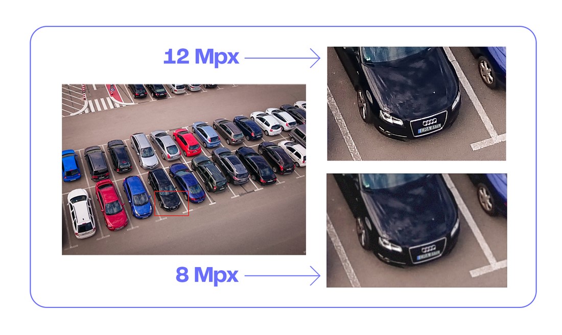 Wysoka rozdzielczość - 12MpxMaksymalna ilość detali i szerokie pokrycie obrazuRozdzielczość 12 Mpx (4480 × 2512) umożliwia rejestrację obrazu o wyjątkowo wysokiej szczegółowości. Kamera oferuje kilka razy większą liczbę pikseli niż standardowe modele Full HD, co pozwala objąć większy obszar i jednocześnie zachować wysoką ostrość drobnych elementów – takich jak twarze, numery tablic rejestracyjnych czy drobne obiekty w tle. Tak wysoka rozdzielczość znacząco zwiększa skuteczność dozoru i pozwala na efektywne wykorzystanie funkcji cyfrowego powiększenia bez utraty jakości obrazu. |