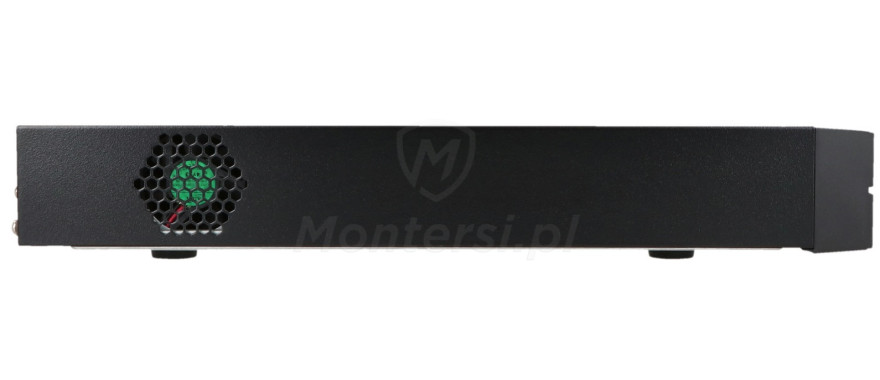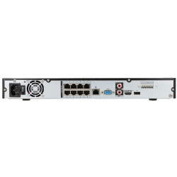 Cechą charakterystyczną rejestratora jest wbudowany 8-portowy switch PoE 802.3af/at, o max. budżecie mocy 130 W. Dzięki niemu możliwa jest jednoczesna transmisja danych i zasilanie podłączonych kamer PoE po tym samym kablu UTP. Do największych zalet technologii Power over Ethernet można zaliczyć: