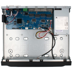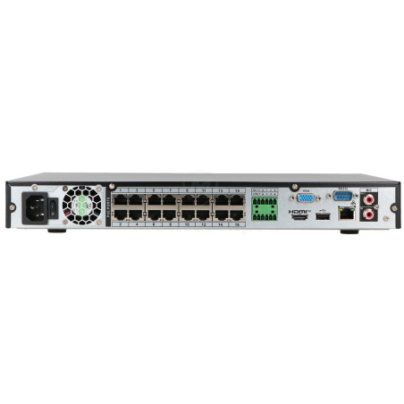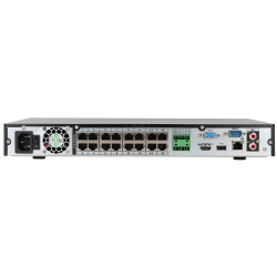 Cechą charakterystyczną rejestratora jest wbudowany 16-portowy switch PoE 802.3at/af. Dzięki niemu możliwa jest jednoczesna transmisja danych i zasilanie podłączonych kamer PoE po tym samym kablu UTP. Do największych zalet technologii Power over Ethernet można zaliczyć:
