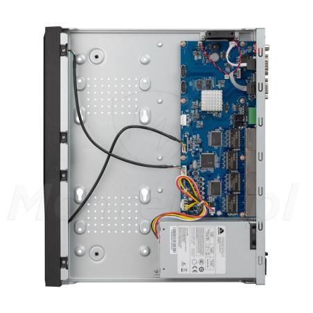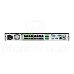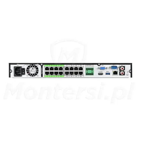 Cechą charakterystyczną rejestratora jest wbudowany 16-portowy switch PoE 802.3af/at, o max. budżecie mocy 130 W. Dzięki niemu możliwa jest jednoczesna transmisja danych i zasilanie podłączonych kamer PoE po tym samym kablu UTP. Do największych zalet technologii Power over Ethernet można zaliczyć:
