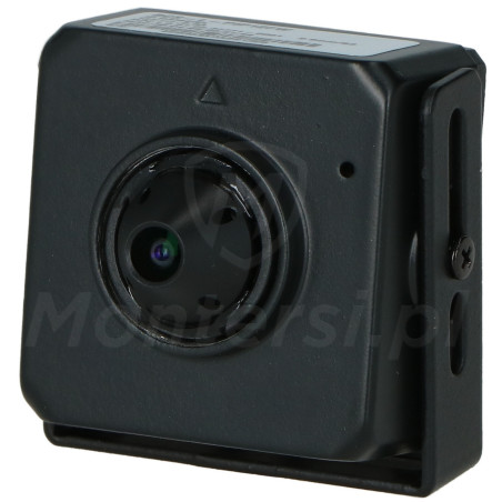 Do budowy kamery wykorzystano stałoogniskowy obiektyw 2.8 mm (F2.0) typu Pinhole. Zapewnia on szeroki kąt widzenia 96° w poziomie / 55° w pionie, dzięki któremu kamera sprawdza się świetnie w realizacji funkcji podglądu ogólnego. Małe wymiary urządzenia pozwalają na jego ukrycie co umożliwia dyskretny podgląd obserwowanego otoczenia.