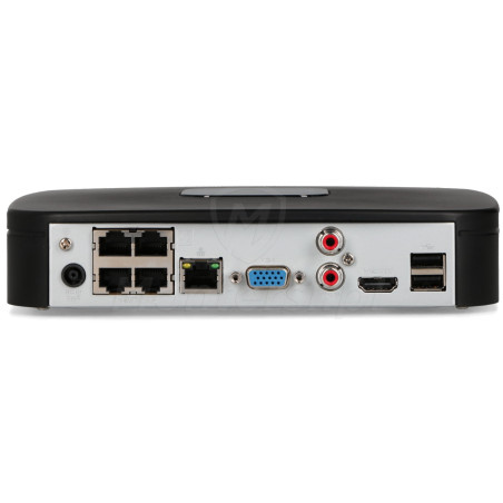 Cechą charakterystyczną rejestratora jest wbudowany 4-portowy switch PoE 802.3at. Dzięki niemu możliwa jest jednoczesna transmisja danych i zasilanie podłączonych kamer PoE po tym samym kablu UTP. Do największych zalet technologii Power over Ethernet można zaliczyć: